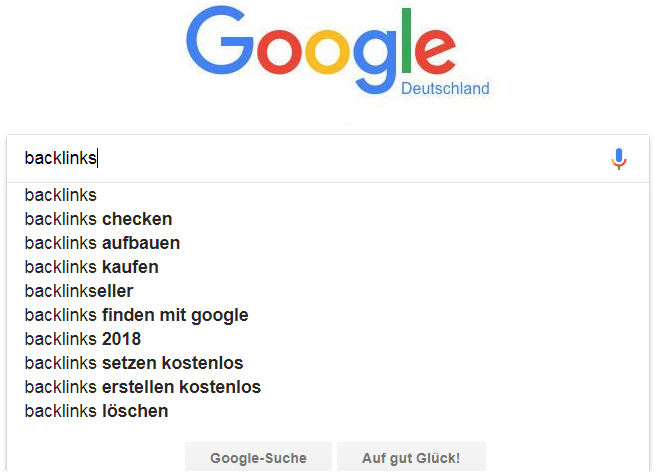 Backlinks sind noch immer einer der wichtigste Rankingfaktoren im Google Algorithmus und das wird auf absehbare Zeit auch so bleiben. Für eine gute Position innerhalb der Google Suchergebnisse sind Backlinks also weiterhin unverzichtbar. Aufgrund des stark ausgedünnten Marktes, ist der Aufbau eines Linkprofiles heute jedoch wesentlich einfacher als noch vor einigen Jahren. Die meisten Seitenbetreiber konzentrieren sich heute fast ausschließlich auf OnPage Optimierung und warten auf ein natürliches Wachstum des Linkprofils. Das mag in absoluten Ausnahmefällen auch funktionieren, in der Regel jedoch nicht. Auch sehr gute Webseiten mit großen Mehrwert für die Besucher, werden nur sehr selten natürlich verlinkt. Da heute die meisten Seitenbetreiber also keine Backlinks mehr kaufen, profitieren insbesondere die, welche das noch tun. Ob man das nun "Black Hat SEO", "Gray Hat SEO" oder "Kraut-und-Rüben SEO" nennt, spielt keine Rolle. Google schreibt keine Gesetze, sondern Richtlinien und daran kann man sich halten oder eben nicht.Schaut man sich bei Google Suggests (Autocomplete) um, findet man auch 2018 sehr viele verschiedene Anfragen. Das deutet durchaus auf eine weiterhin vorhandene Nachfrage hin: